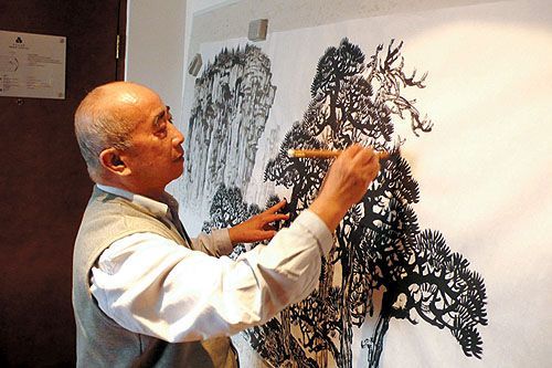 1992年,为我国申办奥运会,他主笔创作了百米长卷《中华魂》,生动形象地再现了祖国山河的壮美;1994年国庆前夕,他为人民大会堂东厅主笔绘制巨幅大型山水画《幽燕金秋图》,受到党和国家领导的称赞。江泽民同志说:“画的气势很大,体现了中华民族的精神内涵。”1995和1997年,他为中南海创作《山永寿松长青》和几幅独具特色的山水画;1999年,他为中央军委八一大楼创作巨幅山水画《长城雄关图》等。2001年1月13日,他又受到江泽民主席的亲切接见。