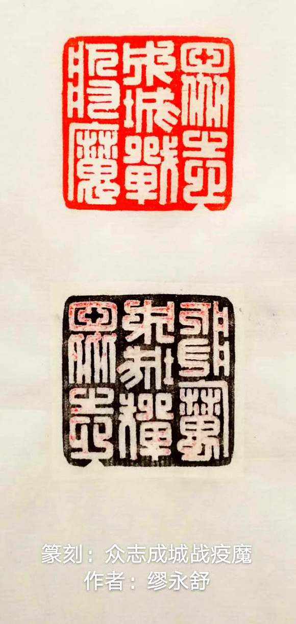 缪永舒馆员作《死守严防全民合力除瘟疫 真抓实干举国同心抗病魔》