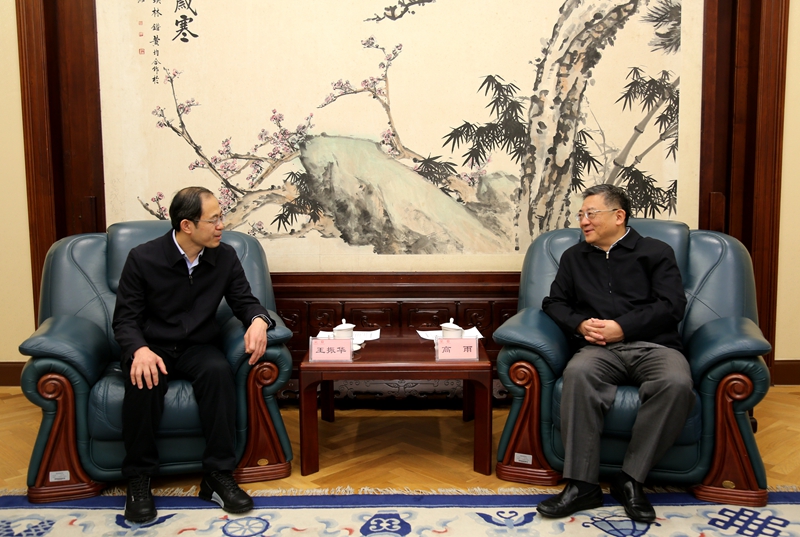 近日,国务院参事室党组书记、主任高雨在京会见陕西省政府办公厅副主任、参事室主任王振华一行。